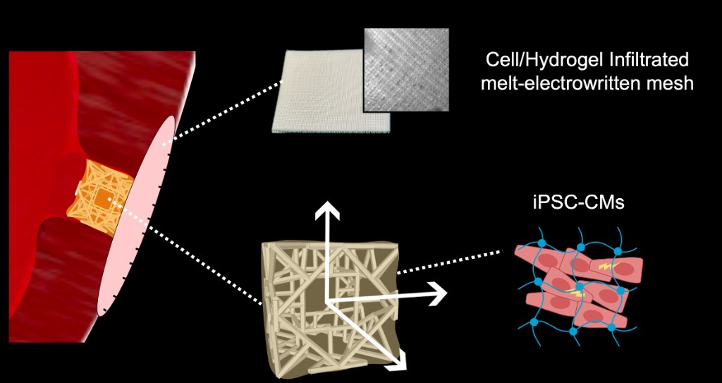 This work demonstrates that advanced manufacturing techniques — volumetric printing and melt electrowriting — can be used to engineer a cardiac patch that is both implantable and biologically functional. Furthermore, it demonstrates the effectiveness of microstructured materials in reinforcing soft, fragile, cell-laden materials. In the future, these fabrication techniques could be used in other regenerative medicine applications.