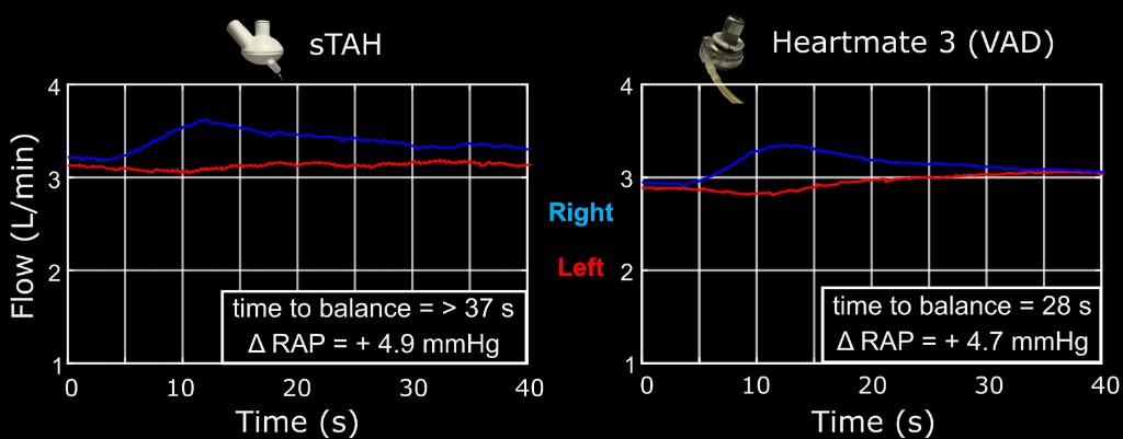 End-stage heart failure requiring total cardiac replacement is currently treated using mechanical devices, such as pulsatile total artificial hearts (TAHs) or rotary assist systems. Existing TAHs, such as the SynCardia, operate at fixed settings and do not adapt well to the body’s changing oxygen demands. This is because the systems coordinate output between the left and right circulation by underfilling and operating at a fixed rate. This limits cardiac output and patient mobility. How can we enable adaptive cardiac output without adding sensing, control systems, or mechanical complexity?
